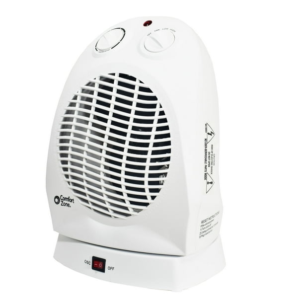 Comfort Zone 750 1 500 Watt Fan Forced Oscillating Electric Portable Heater White Walmart Com